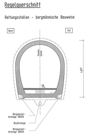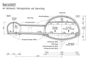- sieben Notausgänge in den Rettungsstollen im Abstand von 240 m,