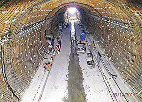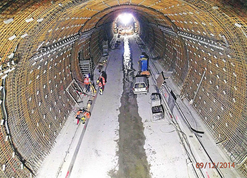 Nach Beendigung des Ausbruchs und der nachfolgenden Profilierungsarbeiten begann im April 2013 die Betonage der Sohlgewölbe von Süden nach Norden. Ab August 2014 schloss sich die Betonage der Gewölbe an. Die Gewölbebewehrung war mit Tragbögen selbsttragend ausgebildet. Da ein Gewölbeblock in 24 h hergestellt wurde, konnten pro Woche 5 Blöcke realisiert werden. Zur Nachbehandlung des Betons standen drei Nachbehandlungswagen zur Verfügung.