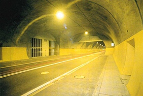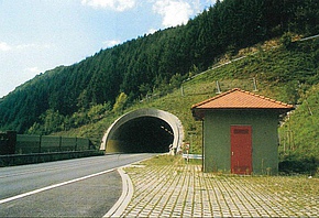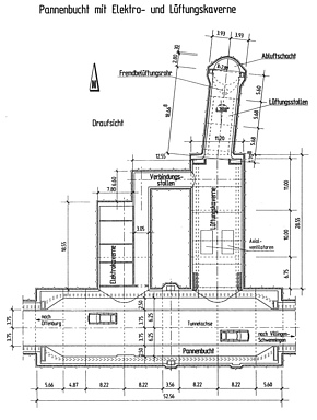 Von der etwa in Tunnelmitte angeordneten Pannenbucht zweigen zwei Kavernen mit gleicher Ausbruchsfläche wie der Regelquerschnitt rechtwinklig zur Fahrbahn nach Norden ab. Die westliche Kaverne dient der Elektroversorgung, die östliche der Tunnelentlüftung. Bei einem 1 km langen im Gegenverkehr befahrenen Tunnel kommen als Lüftungs- Systeme in Frage: