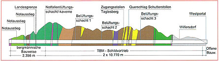 - ein 2356 m langes zweigleisiges Tunnelstück in konventioneller Bauweise