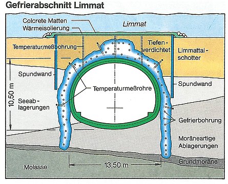 Unterquerung der Limmat in Zürich mit dem Gefrierverfahren