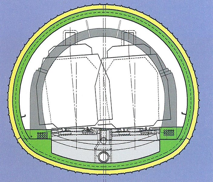 The route between Mainz Central Station and the Mainz South Station was built between 1881 and 84 as a twin-track tunnel. On account of pronounced damage, during the 1930s, a 300 m long section of the tunnel was relocated in a deep cutting so that the former 1,200 m long tunnel was divided up into the Central Station and Mainz South tunnels. The route is now to be expanded to take 4 tracks in conjunction with the development of the Mainz-Mannheim main line. Towards this end, the twin-track, 1,296 m long Neue Mainzer Tunnel was opened in 2003 to the south of the 2 existing Mainz tunnels. From 2006 to 2009, the existing tunnels are to be upgraded through an enlargement in keeping with the DB AG's current code of practice. Inner-urban tunnelling with shallow overburdens calls for extremely careful planning and construction. Numerous streets and buildings are located in the tunnel's sphere of influence and generally the overlying ground is no more than 10 to 20 m deep. The cross-section is mainly located in tertiary silts and clays, which are interspersed and underlaid by sands and occasional sandstone banks. The enlargement to attain the new 75 m² useful cross-section requires 24 m³ of masonry to be removed and 53 m³ of rock to be excavated per tunnel metre. The cross-section is to be secured in short lengths of advance with shotcrete and will be provided with a reinforced concrete lining. Excavation classes 5 and 7 are expected to be applied with injection lances, forepoling plates and pipe umbrellas used for advance supporting. As the supporting measures provided by the drive will not be sufficient to ensure the stability of certain buildings, fan-shaped jetting injections can be undertaken from shafts prior to the driving operations in order to avoid damage so that the foundations of the buildings are substantially improved. Subsequent injections can then be executed from these shafts via the fan-shaped boreholes, in order to be able to compensate for settlement between the individual excavation states caused by tunnelling.