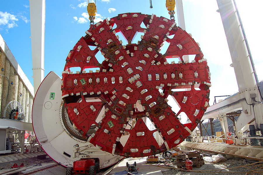 Zur Verwirklichung der Nord-Süd-Magistrale Berlin-München-Verona verfolgt die Deutsche Bahn AG den Aus- und Neubau der Strecke Berlin-Leipzig/ Halle-Erfurt-Nürnberg -München. Das Verkehrsprojekt Deutsche Einheit 8.2 beinhaltet den Neubau der 123 km langen Strecke von Erfurt nach Leipzig/Halle. Neben mehreren Talbrücken und 2 weiteren Tunneln ist der Finnetunnel mit 6,9 km das größte Ingenieurbauwerk in diesem Abschnitt. Außerdem ist er der einzige Tunnel auf der gesamten Strecke, der im maschinellen Vortrieb mit einschaligem Tübbingausbau aufgefahren wird. Der Tunnel besteht aus 2 parallelen Röhren, die alle 500 m über Querstollen miteinander verbunden sind. Beide Röhren werden mit 2 Tunnelvortriebsmaschinen (TVM) versetzt parallel aufgefahren. Der Außendurchmesser der Sch ildmaschinen beträgt 10,82 m, die Tübbingdicke 45 cm - bei einer Ringbreite von 2 m - und der Innendurchmesser 9,60 m. Die beiden TVM der Herrenknecht AG sind als umbaubare Mixschilde konzipiert. Auf den ersten 1500 m des Vortriebs wurden die TVM als Hydroschild im Closed Mode mit Flüssigkeitsstützung betrieben, dann erfolgte unter Tage der Umbau zum Open Mode. Hierbei wurde der Bohrkopf ohne Umbaukaverne angepasst. Die Hydroschildkomponenten wie Schleusen etc. wurden entfernt und die spezifischen Open-Mode-Komponenten wie die Bandförderung eingebaut. Die anstehende Geologie ist auf den ersten 1500 m von Wechselfolgen aus Tonen, Schluffsteinen und Sandsteinen geprägt, die im Bereich der 1. und 2. Finnestörung komplett zerschert sind. Außerdem liegen auf den ersten 250 m des Tunnels mittlere und untere Keuper vor. Da das Grundwasser von Tunnelmeter 0 bis 1500 bis zu 60 m über der Tunnelfirste steht und der Grundwasserzufluss sehr hoch ist, müssen diese Bereiche mit einem Hydroschild aufgefahren werden. Von Tunnelmeter 1500 bis zum Ende bei Tunnelmeter 6622 liegen dann durchweg standfeste Sandstein-Ton-Wechselfolgen vor, die im Open Mode aufgefahren werden können. Das anstehende Grundwasser steht auch hier bis zu 60 m über der Tunnelfirste und wird im Bereich von Tunnelmeter 1500 bis 6000 mit einer Wasserhaltung über Bohrbrunnen abgesenkt. Auf den letzten 800 m liegt der Wasserspiegel unterhalb der Tunnelachse. Im Anschluss an die Vortriebsarbeiten, deren Abschluss für den Frühsommer 2010 geplant ist, erfolgen der Einbau der Sohle, die Erstellung der offenen Bauweisen von je 75 m, der 13 Querschläge sowie dreier Technikstollen.