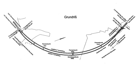 Das Betriebsgebäude Mitte, mit seiner Verbindung zur Pannenbucht Mitte, befindet sich in einer Hanglage. Damit im Endzustand keine einseitigen Hang- Schubkräfte auf das Bauwerk wirken, wurde der Hang mit Dauerankern gesichert.
