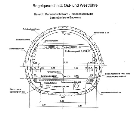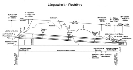 - Gesamtlänge: Weströhre: 2275 m, Oströhre: 2390 m