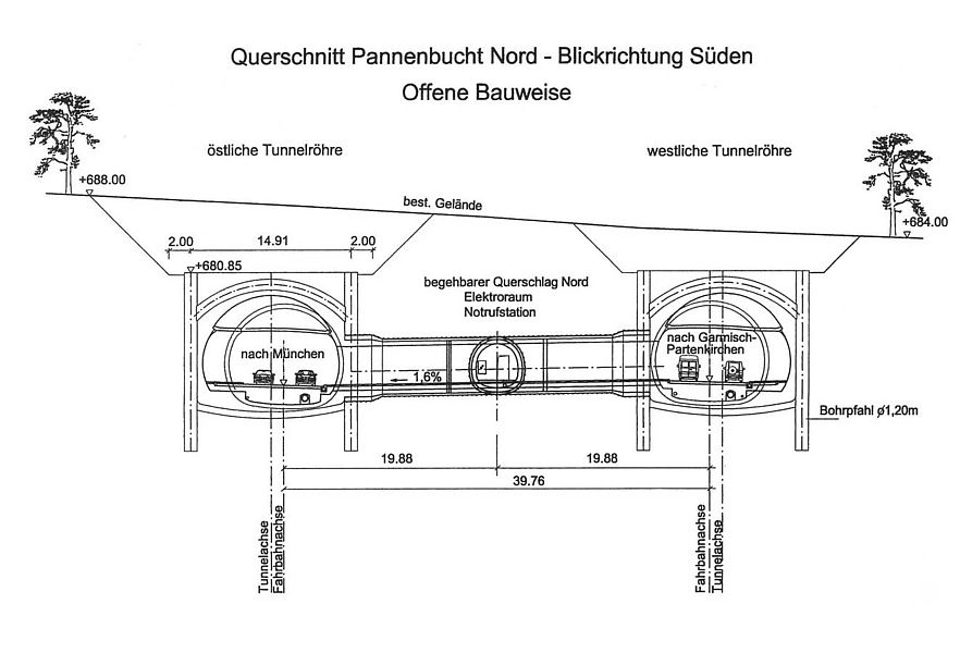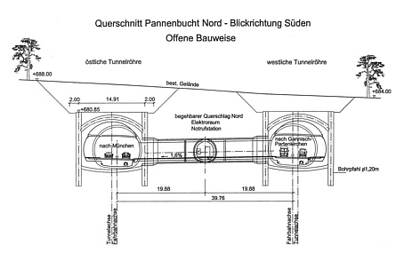 Die um rund 110 m versetzte Lage der Südportale wurde vor allem durch die Erhaltung eines wichtigen Naturerholungsgebietes der Gemeinde Garmisch- Partenkirchen am Philosophenweg und durch den schrägen Anschnitt der Hangfläche des Schweinsbichl bestimmt.