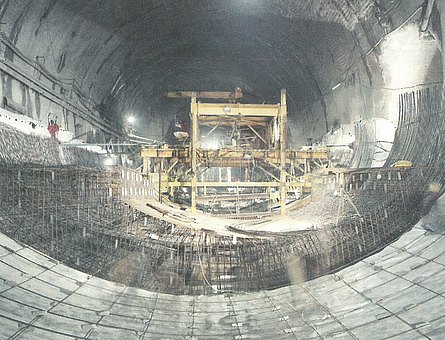 Aushub und Bau der Tunnelgewölbe erfolgten unterirdisch im Schutz des Deckels.