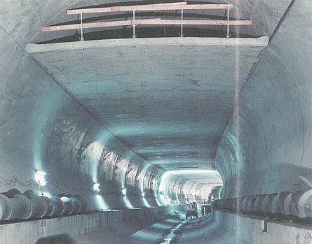 Alle Gewölbequerschnitte des Tunnels wurden durch eine 3 mm dicke Kunststoffdichtungsbahn aus PE, die durch ein Vlies bergseits vor Beschädigungen geschützt wird, versehen.