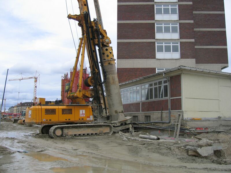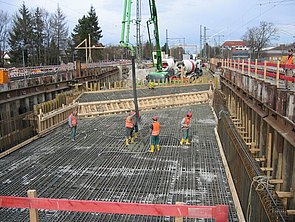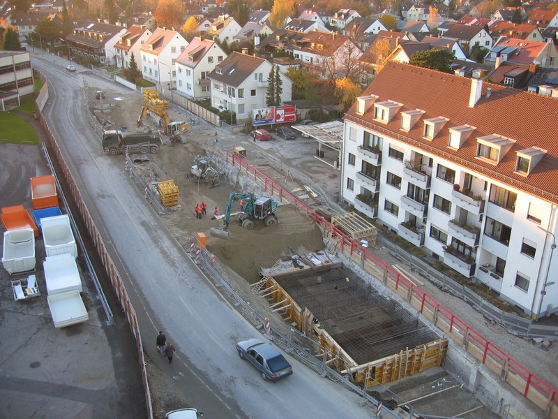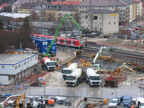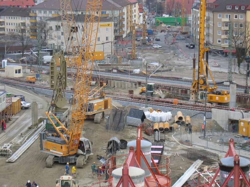 • Auftragsvolumen: 2-stöckige P+R-Anlage und Abstellanlage H = 9,45 m, B = 16,20 m; Schlitzwand-/Bohrpfahldeckelbauweise; Unterqueren; der 5-gleisigen DB-Anlage; 40 Mio. Euro (Rohbau)