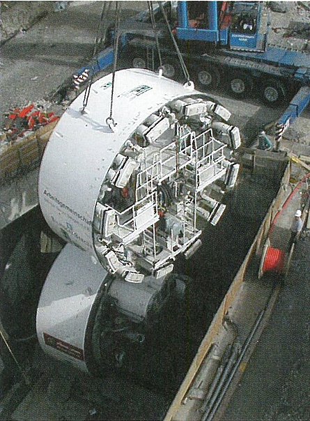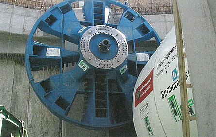 Das Baulos U 1/1 der U-Bahn Wien-Kagran wurde vom Herbst 2001 bis Frühjahr 2005 realisiert. Teil dieses Bauloses ist ein aus zwei eingleisigen Tunnelröhren bestehender, ca. 415 m langer Streckenabschnitt. Das Auffahren dieser Tunnelröhren erfolgte mit einem Hydroschild, Schilddurchmesser 6,80 m, von Juni 2003 bis Dezember 2003. Die Überdeckung schwankt zwischen 3,40 und 12,00 m. Neben Ver- und Entsorgungsleitungen wurden mehrere mehrgeschossige Wohngebäude und eine historische Kirche setzungsarm unterfahren. Größte Herausforderungen stellten die Logistik und die extrem engen Platzverhältnisse im innerstädtischen Bereich dar. Der Ausbau erfolgte mit Tübbingen, hergestellt aus wasserundurchlässigem Brandschutzbeton B500 unter Zugabe von Polypropylenfasern. Die Tübbinge wurden mit EPDM-Dichtungsrahmen ausgerüstet, die auf 3 bar Wasserdruck dimensioniert sind. Ein Tübbingring ist im Mittel 1,30 m breit und besteht aus 6 Segmenten und einem kleinen keilförmigen Schlussstein. Die Trasse liegt inmitten des Donautals und zur Gänze im Bereich der rezenten Mäander. Die Schichtenfolge zeigte, dass oberflächennah durchweg mit Aufschüttungen mit einer Mächtigkeit zwischen 0,50 und 3,00 m, bereichsweise auch mit Auesanden und Auelehmen, zu rechnen war. Die darunter folgenden extrem feinteilarmen Donauschotter bildeten den wesentlichen Bestandteil des Baugrundes. Sie waren über den gesamten Bauabschnitt anzutreffen und weisen eine Mächtigkeit zwischen 6,00 und 15,00 m auf. Darunter folgen die jungtertiären, überwiegend aus Schluffen und Sanden bestehenden Schichten des Oberpannons. Die Tertiäroberkante besitzt erosionsbedingt ein unregelmäßiges Relief. Daher war die darunter folgende schluffig-tonige Schichtfolge unterhalb der quartären Kiese in Tiefen zwischen 9,00 und 17,00 m zu erwarten. Der im Kies liegende Teil des Ausbruchquerschnitts und eine 2,00 m dicke mantelförmige Randzone außerhalb des Querschnitts wurden auf der gesamten Streckenlänge mit einer Porenrauminjektion auf Zement-Bentonit-Basis vorab stabilisiert. Diese Injektionen sollten unkontrollierte Bodenentzüge bzw. Verbrüche vermeiden helfen und einen Ausgleich größerer Setzungsdifferenzen bzw. eine Verflachung der Setzungsmulden an der Geländeoberkante bewirken. Darüber hinaus sollten die sandarmen Kiese verkittet werden, um den Boden für eine Schildfahrt ausreichend standfest zu machen und plötzliche Verluste von Stützflüssigkeit in durchlässige Kieslagen zu verhindern.