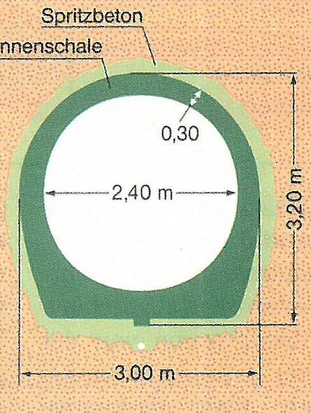 Die Stadt Wien bezieht ihr Trinkwasser hauptsächlich aus den steirischen und niederösterreichischen Kalkalpen. 1910 wurde die II. Hochquellenleitung in Betrieb genommen. Über diese Leitung kommt heute etwa die Hälfte des benötigten Trinkwassers nach Wien. Die Trasse verläuft zunächst in der Kalkalpenzone und dann in der baugeologisch schwierigeren Flysch- und Molassezone. In diesem Bereich entstehen zunehmend Schäden an der Leitung, weshalb bei der niederösterreichischen Ortschaft Scheibbs ein Teilbereich durch einen neuen Stollen ersetzt wurde. Der Stollen hat einen lichten Durchmesser von 2,40 m und eine 30 cm dicke Betonauskleidung. Er wird, wie auch die übrigen Abschnitte der Hochquellenleitung, als Freispiegelleitung betrieben. Die Gesteinsserien der Flyschzone zeigen einen häufigen Wechsel zwischen sandigen und tonigen Ablagerungen mit bis zu meterdicken, gehankten Sandsteinabfolgen. Die Flyschgesteine haben ein relativ dichtes Gefüge und führen kaum Wasser. Der Auftraggeber hatte zunächst einen Sprengvortrieb ausgeschrieben. Gemäß Sondervorschlag der ausführenden Arbeitsgemeinschaft wurde jedoch eine Teilschnittmaschine mit Querschneidkopf eingesetzt. Innerhalb einer intensiven Arbeitsvorbereitung wurde ein detailliertes Vortriebskonzept entwickelt, das in dem engen Stollenquerschnitttrotz des langen, einseitigen Vortriebs eine mittlere Vortriebsgeschwindigkeit von 9,5 m pro Tag ermöglichte.